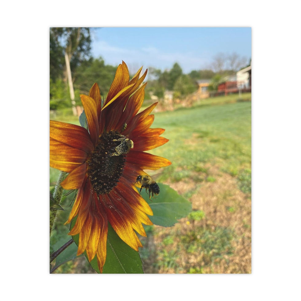 Bumblebee about to land on a Sunflower Premium Matte Posters